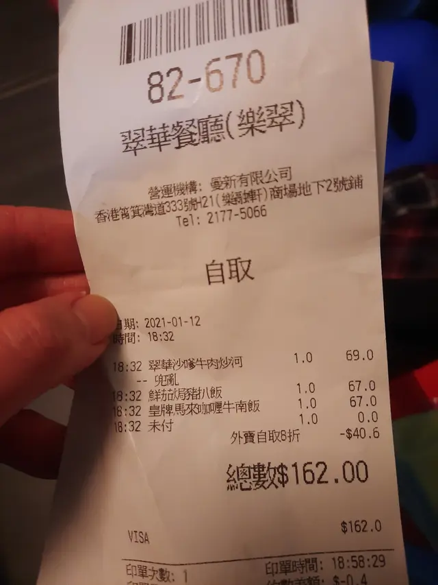 喜歡吃翠華的鮮茄焗豬扒飯, 很大程度由於他們做的是比較老式的焗豬扒飯。 豬扒用香料醃得很入味外, 而且經過較多舊式餐廳常見的油炸處理過 , 所以有一層薄薄的脆皮。 加上茄汁後, 除了在豬扒的邊位依然吃得到香脆, 脆皮更加吸入茄汁, 變相更加好味。 豬扒肉汁充足, 依然非常鮮嫩。 配上炒飯底, 推介。