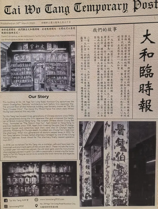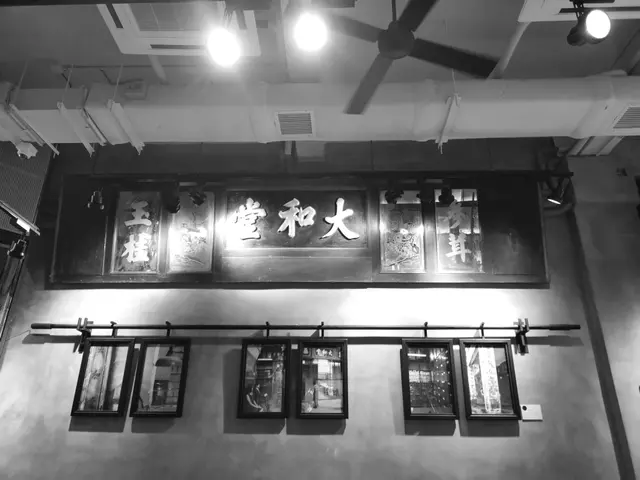 店內保留了昔日藥行的牌匾及鏡架,還有百子櫃,除了有冷氣的咖啡店大堂外,原本藥行的後庭亦闢作室外露天座位。