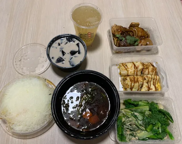 看看點餐紙,共有四項,分別有主餐、飲料、小吃和甜品,每項的選擇都唔少。我們就揀了六樣開心share。主餐有紅燒牛肉米粉;小吃有海苔肉鬆起司蛋餅、滷味拼盤和腐乳燙青菜;飲料有凍蜂蜜檸檬;甜品有芋頭芋圓豆奶,係咪好大食呢? 哈哈!