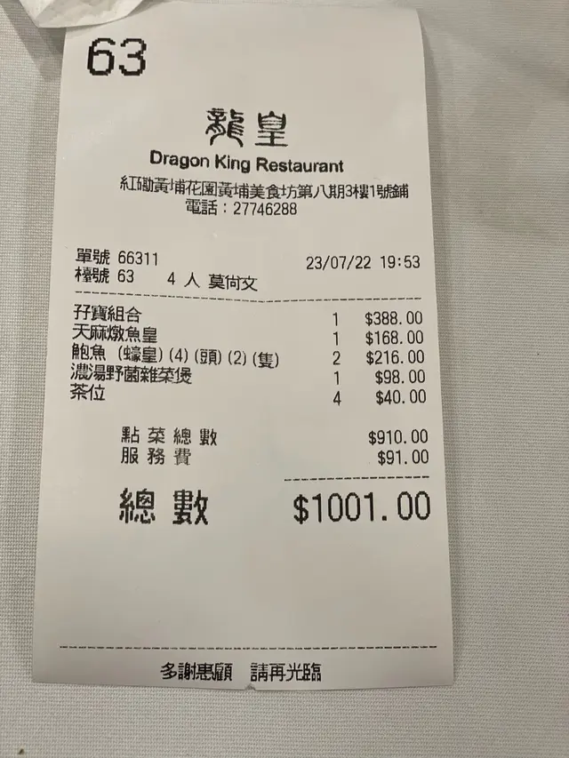 樓面服務好好親切☺️最後仲送上桂花糕甜品(唔知係咪因為龍皇其他分店執笠,好多員工服務🤣)