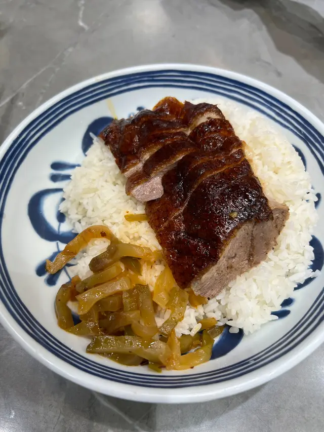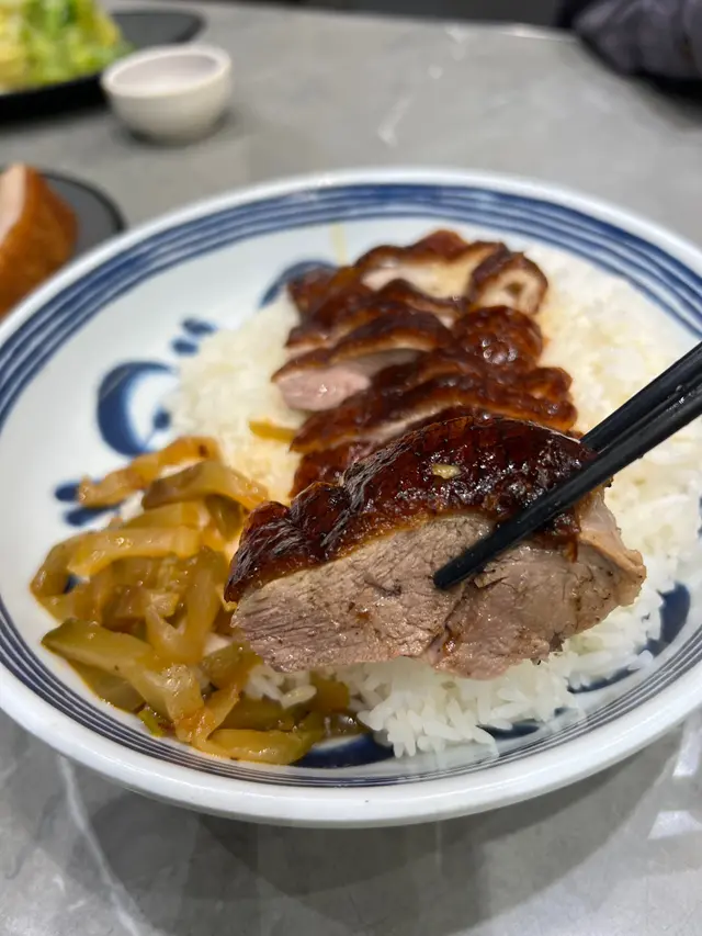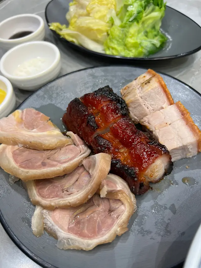 燒鵝皮薄身脆口,鵝肉嫩滑多汁,味道有層次不會很重調味。旁邊以榨菜絲代替油菜,爽口美味。