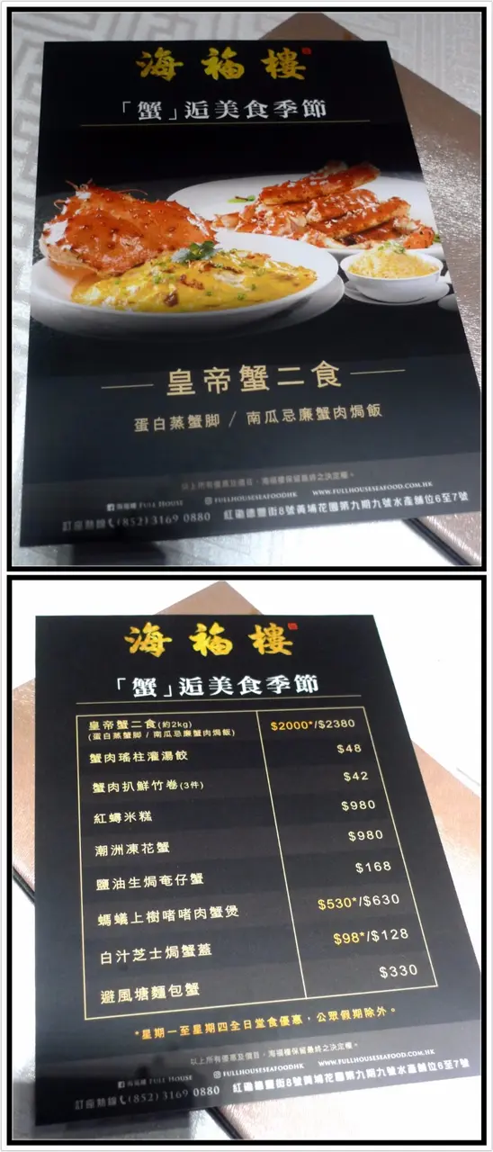 這個皇帝蟹二食極具吸引力(蛋白蒸蟹腳 / 南瓜忌廉蟹肉焗飯),雖然要二千大元,但已足夠我們半圍人吃得捧腹盡興了!