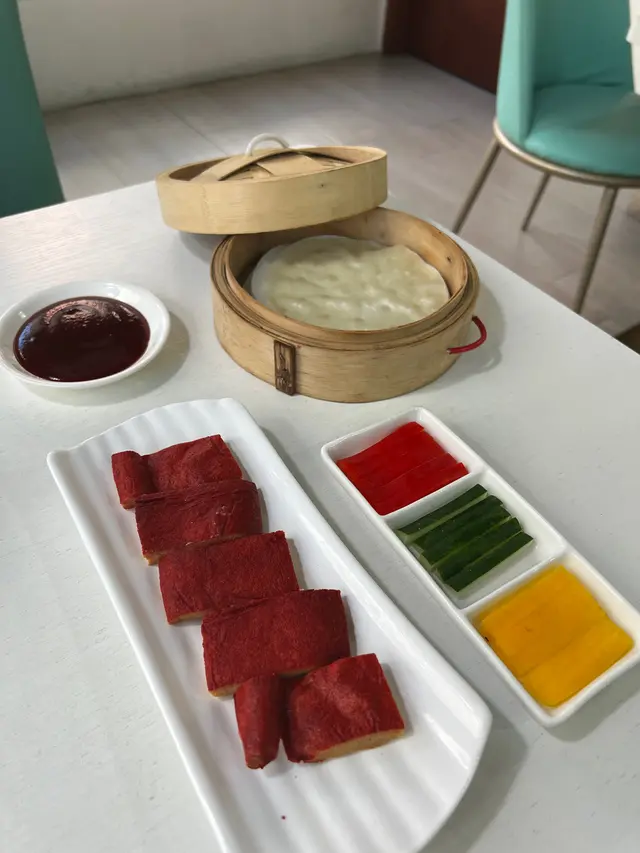 👉 素鴨做得超似真,夾埋甜椒同甜麵醬,用薄餅包住食,口感豐富又唔膩~ 好驚喜!