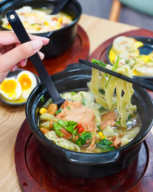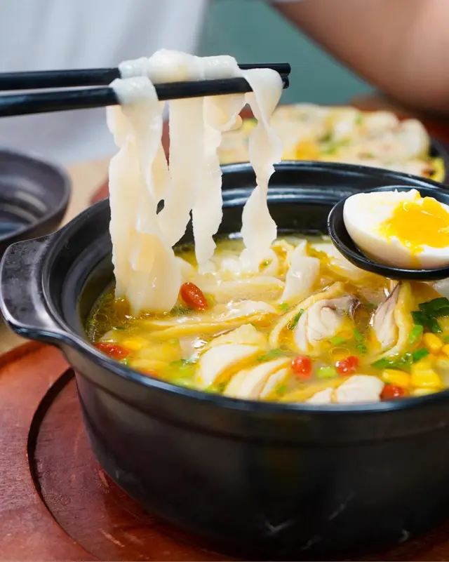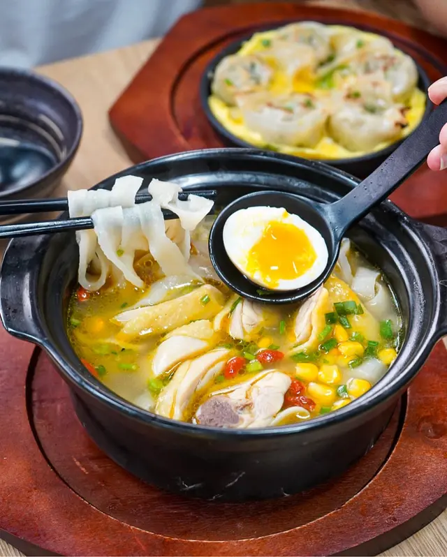 ﹟雞同麵嘅份量都係比足曬🙌‼️個麵用左砂煲黎上, 成程都夠熱辣辣♨️湯底帶點淡淡既藥材味, 飲落清甜, 非常易入口🙆🏻♀️重點係啲雞係真係做到滑雞, 食落嫩口, 好難得😝刀削麵不太厚, 所以食落唔會話好重粉感, 不過個人會想個麵質感再有咬口啲, 食到最後啲麵比較淋咗d🤔