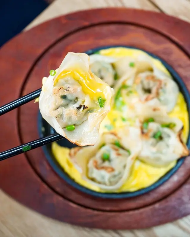 ﹟宮廷餃其實即係煎餃, 不過餐廳特別在仲會加埋蛋一齊煎, 用左鐵板型式咁上🥰粒粒都足餡, 最欣賞佢皮夠薄, 食落味道清清地, 不過未至於唔夠味, 足以證明真係無落任何味精果啲🤤👍