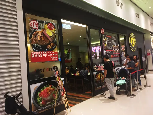 睇戲前搵食,自然睇附近,轉角見到間好似幾高級,似曾相識嘅餐牌,原來係荃灣廣場又要排隊,坐得又唔舒服,仲要之前加錢食嘅沙津已黃,薯條係凍過間。而依間入面得幾枱客,只食塊扒應該唔錯,行到門口,竟然有塊牌要我去隔離攞位?