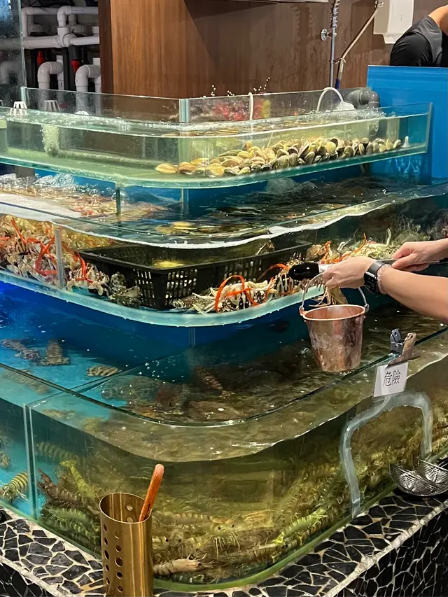 淨係睇見呢個海鮮大魚缸都已經不得了,每次都有5-8款最新鮮嘅海鮮供應,哇!竟然有罕見嘅斑馬賴尿蝦,仲有三點蟹,手板咁大嘅九折蝦,大連鮑魚等等⋯正到吖😃