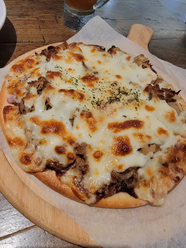 有啲新奇得意, 有啲似日式牛肉飯啲牛肉放左落個Pizza到