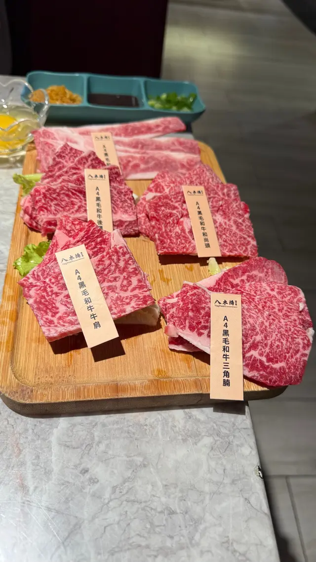 四品和牛燒肉盛,A5黑毛和牛和尚頭,A5黑毛和牛三角腩,A5黑毛和牛牛肩,A5黑毛和牛後腰肉,