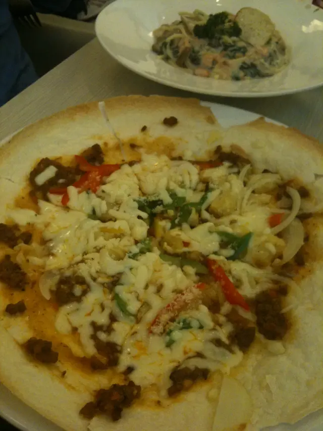 拿波里肉醬簿餅嘅底好簿,未端好脆,質感如薯片。簿餅用左好多料,我最鍾意有好多芝士~