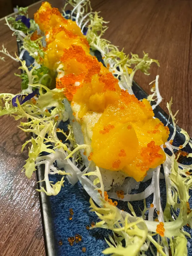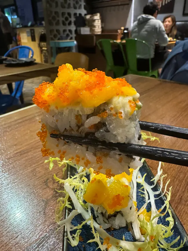 卷物上面鋪滿了芒果及飛魚子