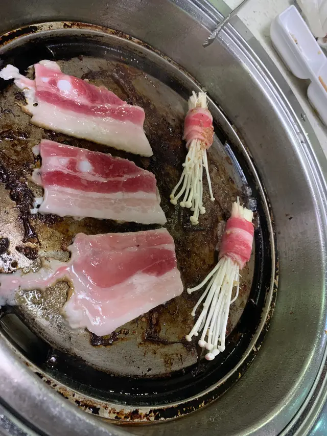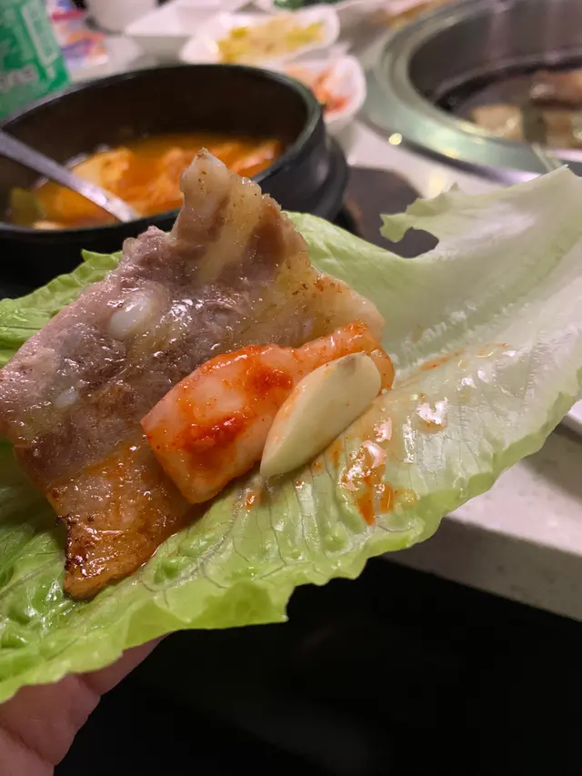 將黑豚豬腩肉,燒到少少金黃色,可以少啲油之餘,仲令到成塊腩肉脆卜卜! 用生菜,加埋蒜頭,同埋少少泡菜一齊食,冇得輸呀!❤️❤️❤️