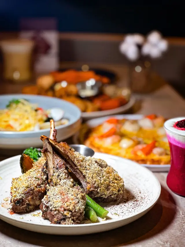 煎香羊架,再加上咖啡豆碎再焗,