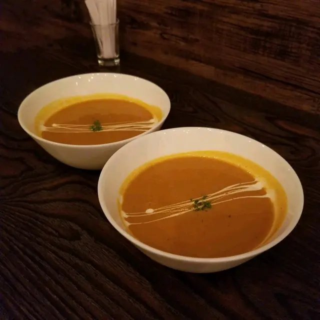餐包和餅乾相信是餐廳自家製,餅乾香脆可口,麵包外脆內鬆,陣陣烤焗香氣,再沾上醬汁吃,味道一流。今晚餐湯是南瓜湯,南瓜湯喝起來滑順極致,南瓜味道濃厚,湯裡還吃到絲絲的南瓜肉,這湯應該是我近期喝過最好喝的湯品。