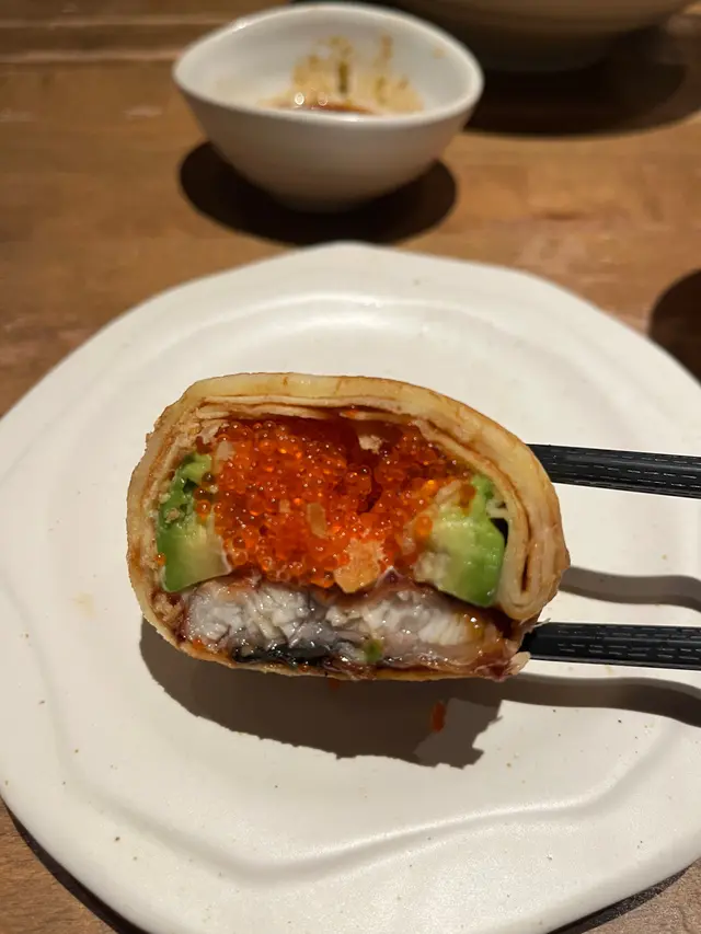 令我印象最深刻係和風卷,用Pancake皮卷住鰻魚,牛油果,飛魚子,鰻魚係軟綿綿唔洗咬果種,成個口感好似食緊一件捲蛋咁,好輕盈,難怪老闆話係人氣菜式。