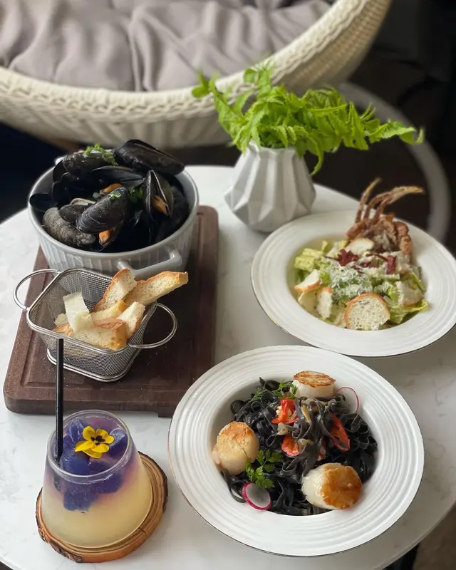 餐廳有白色的小吊籃子可伴坐著打跟精美的食物打卡~