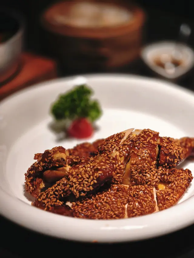 雞皮香脆帶芝麻香,肉質嫩滑多汁,