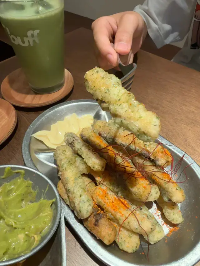 我哋兩款小食,一款係粟米片,另一款係炸魷魚條,魷魚條簡直係必食,原來係厚厚嘅魷魚圈切成一條條,外脆內軟,香脆好味。去得Cafe點會唔試埋佢杯咖啡,呢度有好多精品咖啡,同埋每個月都有唔同產地嘅咖啡豆到店,杯咖啡真係好香濃,忍唔住睇吓佢期間限定嘅烘焙咖啡豆,下次試吓其他口味之後可以買包咖啡豆返屋企自己慢慢沖。