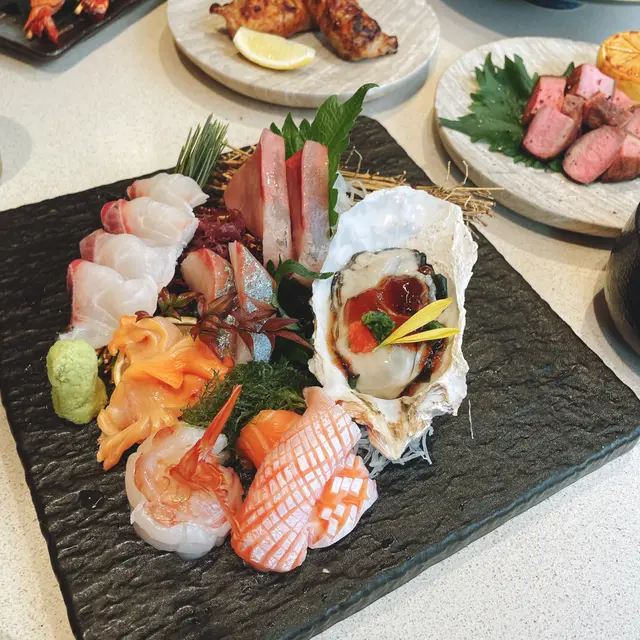 擺盤精緻,魚生鮮甜無比。三文魚腩油脂豐富,油甘魚肉質細緻,真鯛口感彈牙,深海池魚味道醇厚,赤蝦甘甜多汁,日本牡蠣滑嫩濃郁,赤貝爽脆帶d韌性,每一啖都係極致享受。