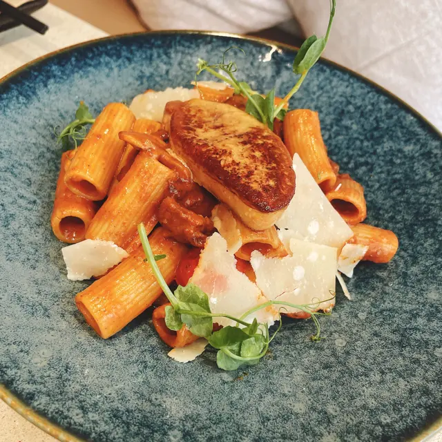 牛尾燉煮得極為軟嫩,配埋香滑嘅鵝肝,味道濃郁好食,大通粉吸滿醬汁,每一啖都充滿層次感。