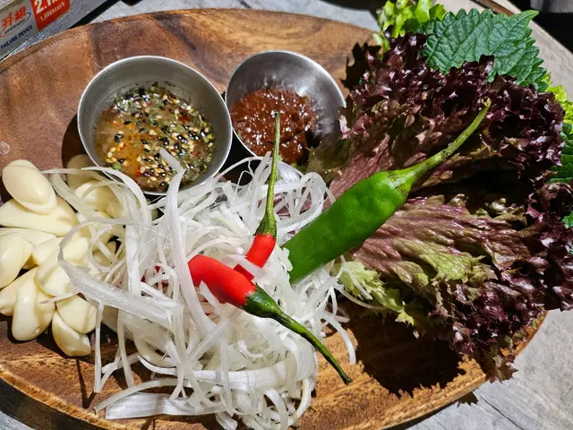 白切五花腩 - 五花腩豬肉味出色,附以韓式配料及調味料,食落不會覺得油膩;