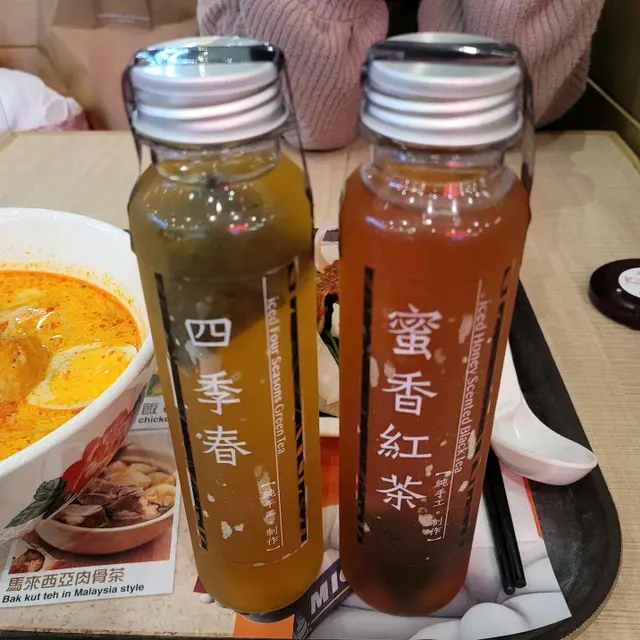 吃香喝辣最不少得喝點精選冷茶,精選冷茶生津止渴,我們分別選喝凍頂烏龍和蜜香紅茶,無糖的凍頂烏龍散發點點茶香,相當解飽膩,蜜香紅茶茶色顯現,甘美順口不苦澀。
