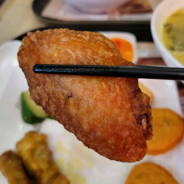 魚餅表層酥薄,咬下去盡是魚鮮,彈勁的嚼感很涮嘴。春卷皮乾脆可口不油膩,菜蔬完美融合,誘出蔬菜的甜鮮,輕易讓人把減肥一事拋諸腦後。雞翼雞皮金黃色澤討喜,雞肉細嫩,雞汁豐沛,教人回味無窮。