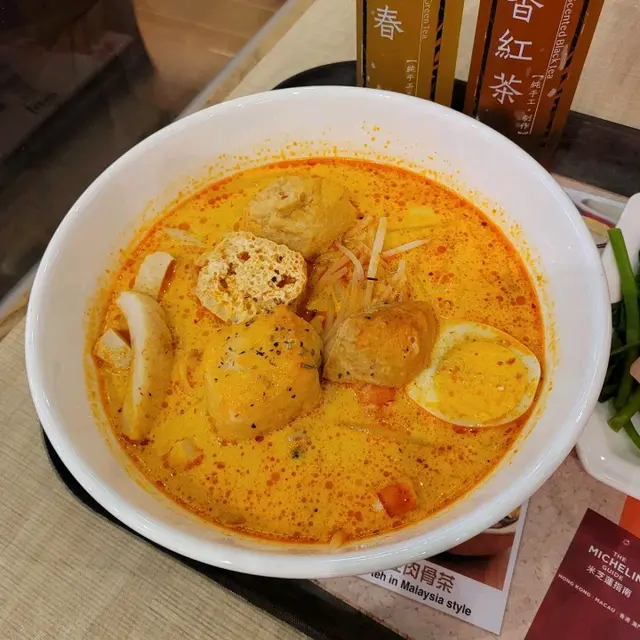 黃澄澄的海鮮喇沙椰香十足,完全是我的味兒,叻沙湯喝下去後勁來上一股辣感,但辣度不會過於刺激。雞蛋蛋黃超大顆,蛋白軟滑,豆卜挺能吸收濃湯,彈牙大尾的蝦仁和脆彈的魚角給得不手軟,米線滑溜富彈性。