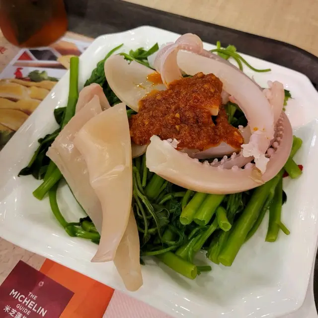 魷魚蔬菜可選通菜,生菜或芥蘭,我們挑了通菜,魷魚拌上特製馬來參巴醬,爽彈的魷魚愈是咀嚼愈是惹味,席捲舌尖,讓人口齒留香,翠綠的通菜清脆極致,愛吃馬拉菜的可別錯過。
