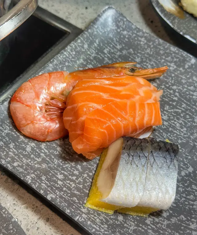 刺身有赤蝦、三文魚、吞拿魚、希靈魚、榮螺片等,赤蝦大隻又鮮甜,我encore左幾次(刺身每次只限選3 款而赤蝦只限一隻)