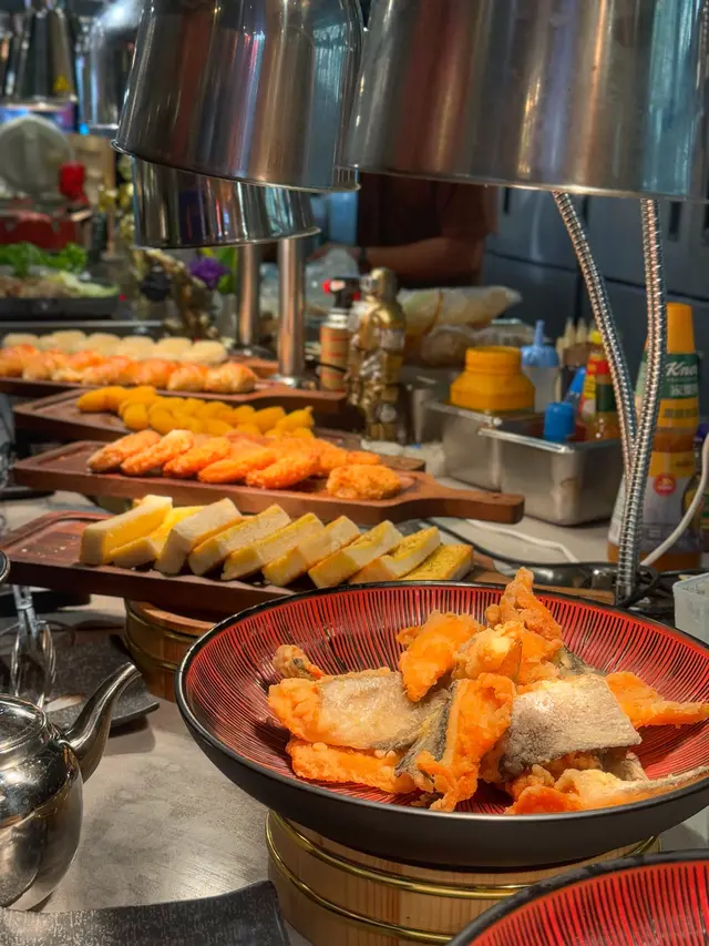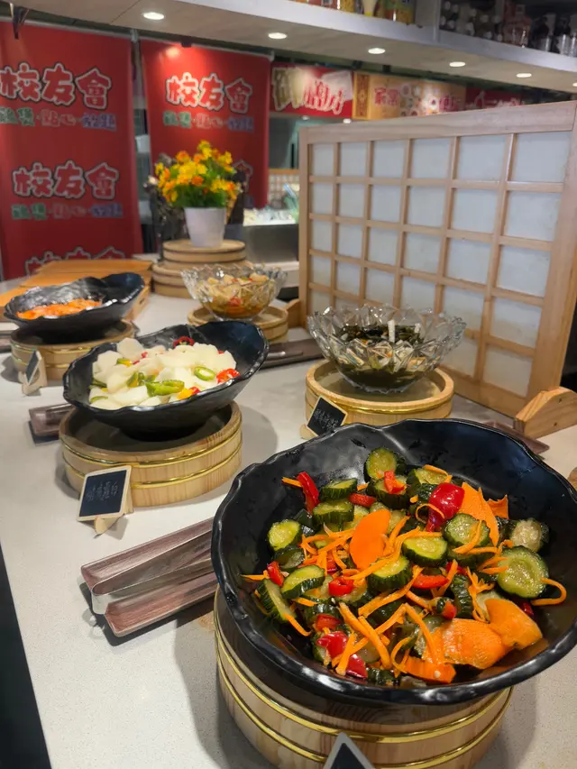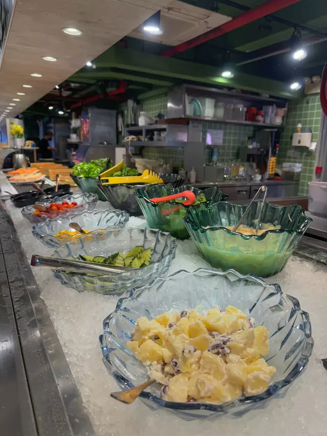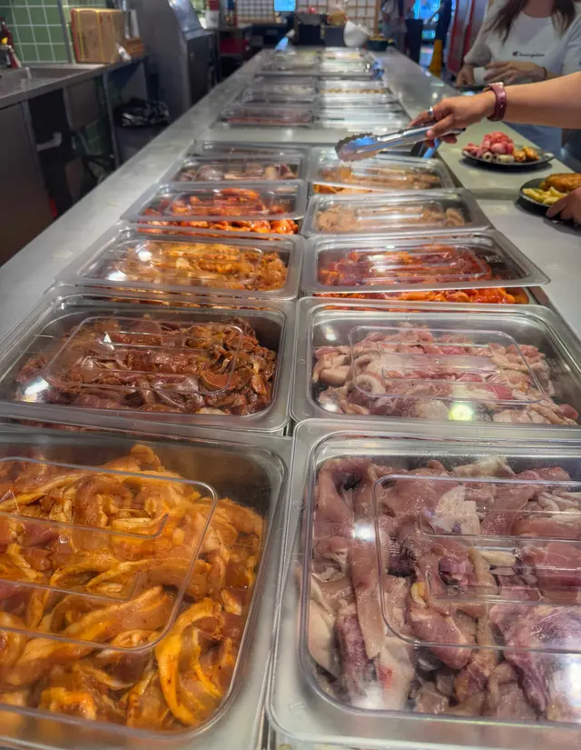 自助區乾淨企理,分多個區域擺放食物,食物選擇算多。燒肉烤爐會有牛油紙可以自己換,烤肉冇咁容易燶,打邊爐嘅湯底都可以在自助區取。
