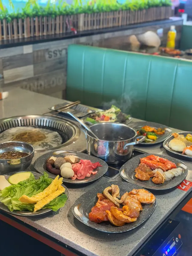 燒烤肉類有各款豬、牛、雞、魚等,有唔同嘅醃料醃製,我自己就鍾意韓式醃豬扒同埋魚柳。亦有多款火鍋配料例如肥牛、丸類、豆卜、菇類、蔬菜等。