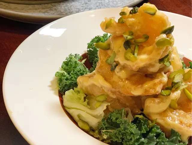 百香果沙律蝦球,就到炎夏的關係這個蝦球不二之處,每粒大蝦好香脆又飽滿連同百香果沙律汁下,非常開胃.