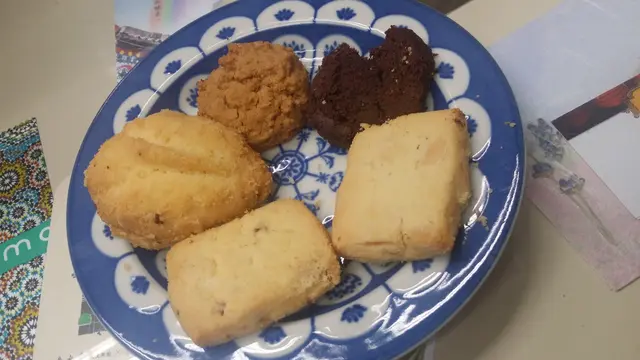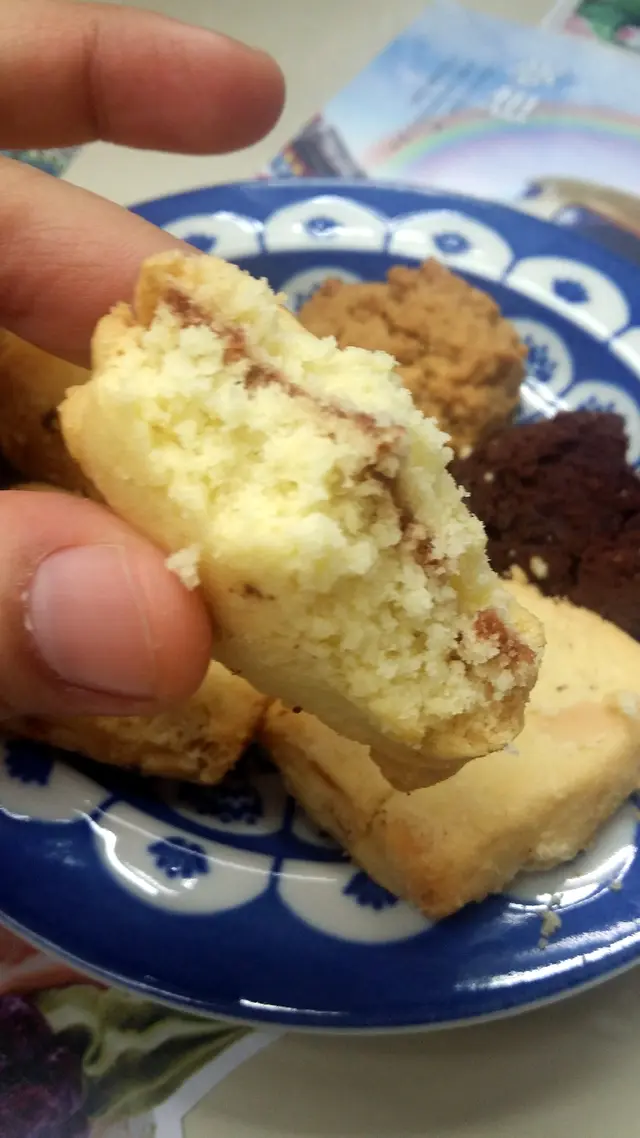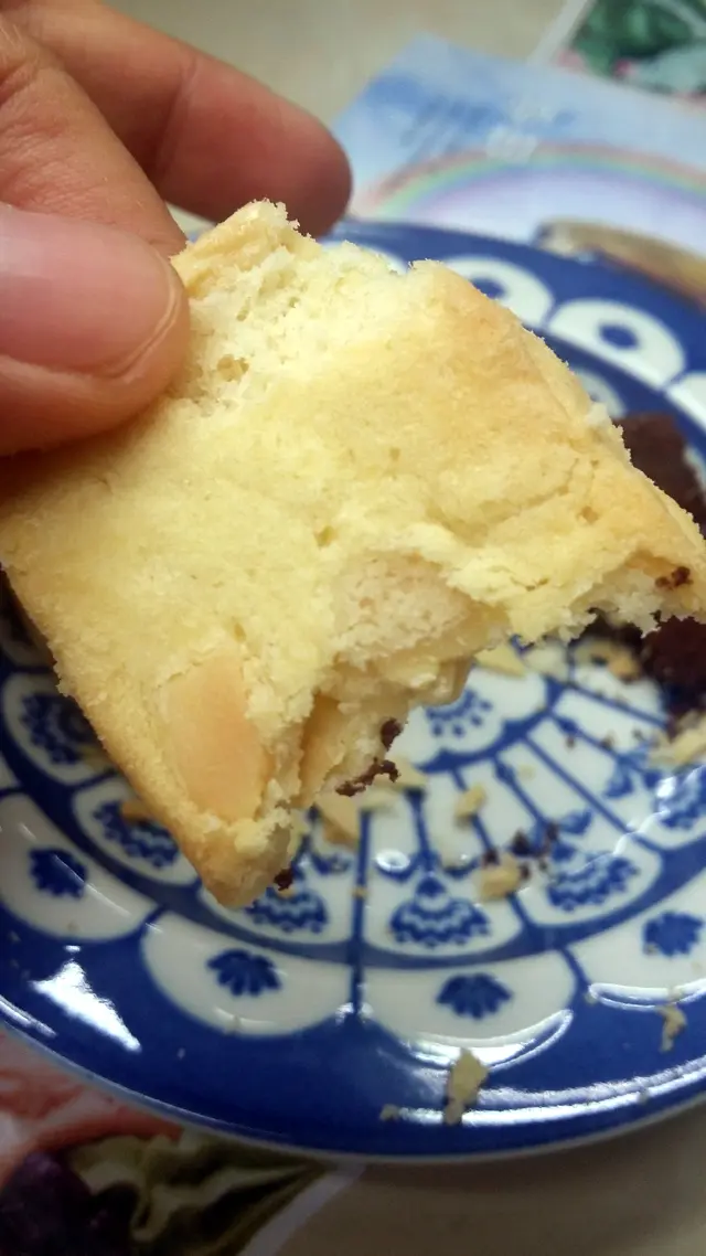 第二日下午,拿出曲奇一看,共有六件,五款味道的曲奇。曲奇新鮮製作,不太油膩或甜膩,吃罷香氣四溢,齒頰留香。然,質感較為鬆散,輕輕拿在手中,已立即如雪花般分崩離析,頓成粉末狀的。朱古力曲奇的質感最為鬆散,從紙袋中取出時,已是粉粉的一團了,吃下去,朱古力味煞是香濃。