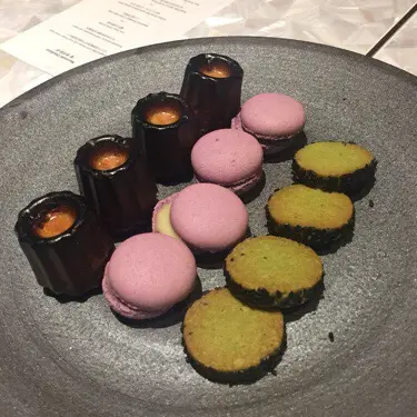 最後個丸子甜品神奇一啖入口爆開, 有淡淡清新生果味, 我個人好like 個焦糖cake (canele). 信我,好味過幾間有名法式甜品店