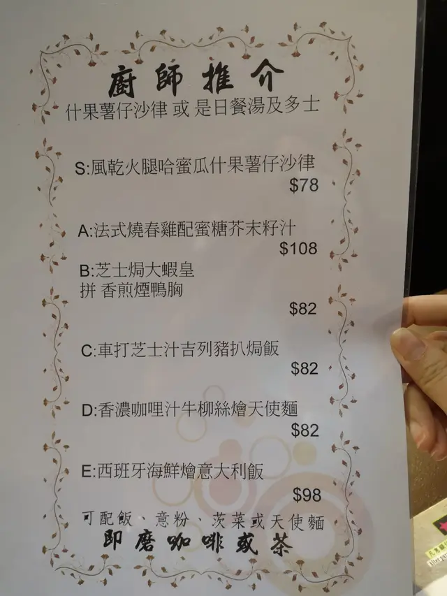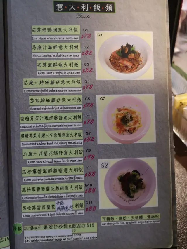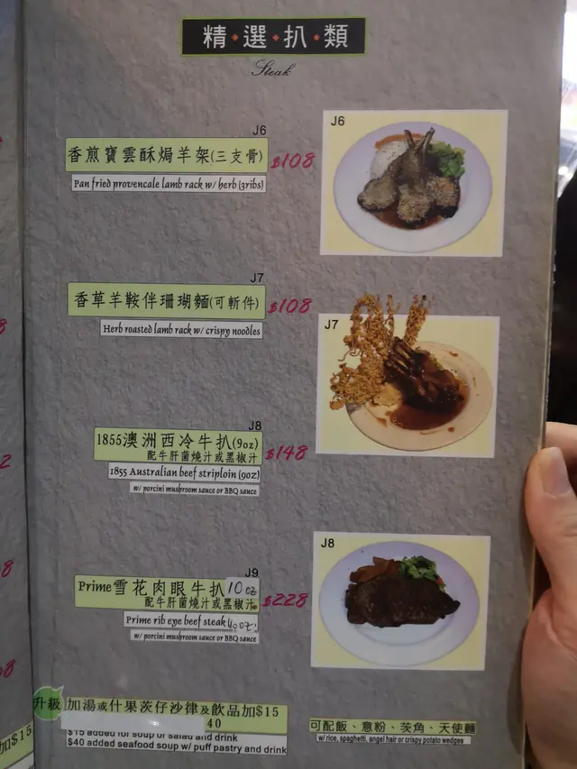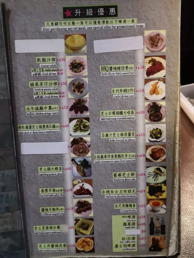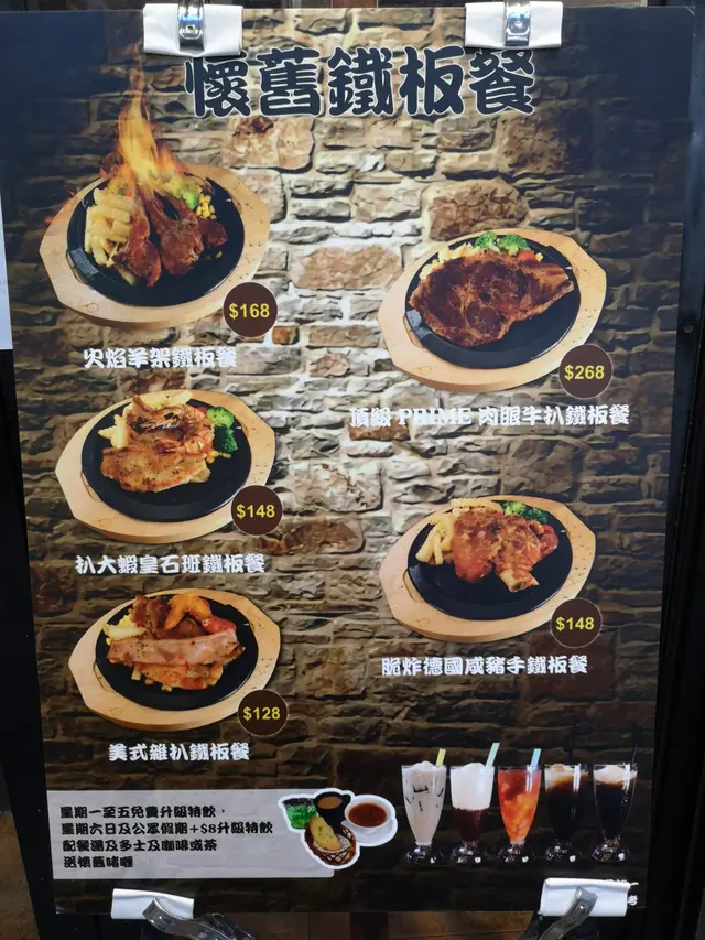 傳統的西餐館提供多款套餐, 鐵板扒餐, 各式小食, 焗飯,意粉,意大利飯, 選擇好多。