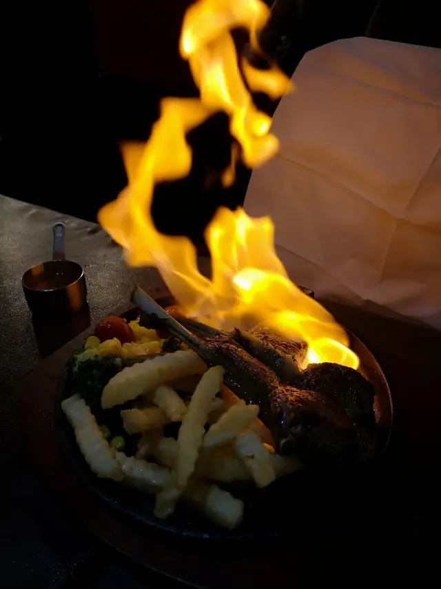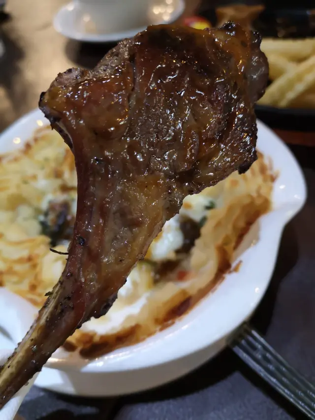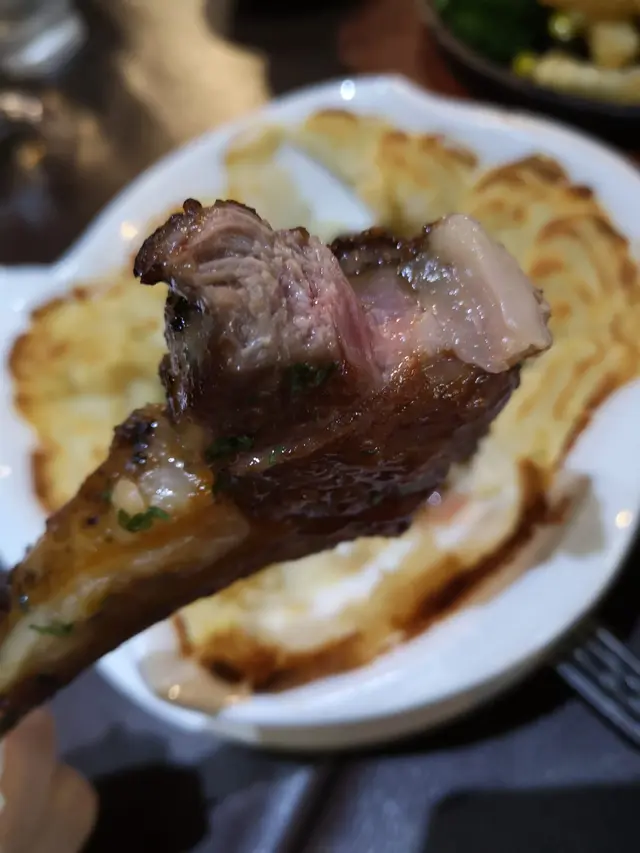 有3件羊架,目測厚切,淋上濃酒點上火,燃燒一會好有睇頭。羊架入囗香酥軟嫩,夾雜著少許羊脂油香,肉汁豐富,特別美味!!