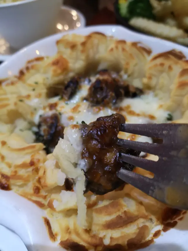 薯蓉幼滑, 鋪上芝士, 已經非常惹味, 田螺肉夠大隻!