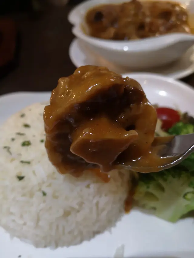 炆到好腍好腍嘅牛尾, 非常入味。 醬汁偏向中式, 好在唔會太鹹, 配白飯一流。