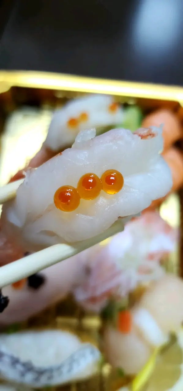 三文魚壽司,好新鮮入口即溶嘅感覺😋💯原切三文腩壽司,肉質軟滑非常惹味💯帆立貝壽司,厚身肥美鮮味十足❤️油甘魚壽司,食起嚟非常幼嫩,而且肉質仲帶有甘甜嘅味道添👍赤海蝦🪰🦐壽司,鮮甜彈牙❤️蜜柑🍊鲷壽司,魚身彈牙,列尾段有淡淡柑橘香氣👍
