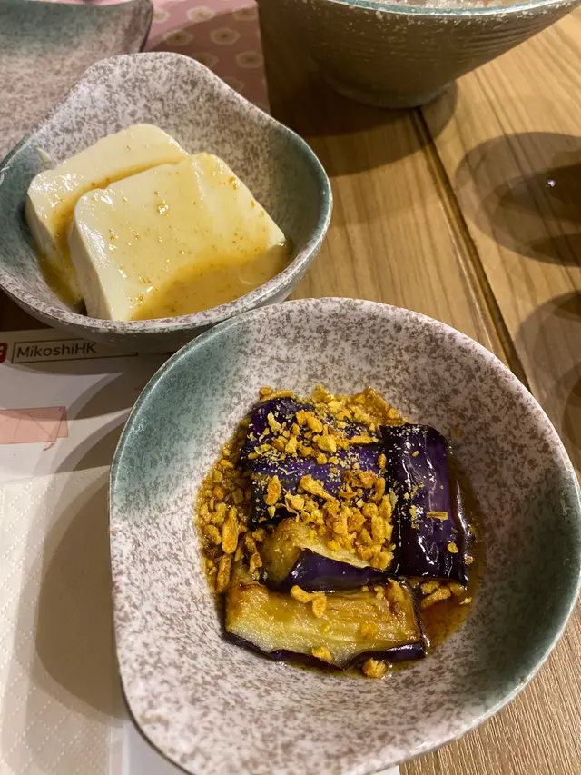 先上小食蒜香茄子、芝麻醬豆腐。