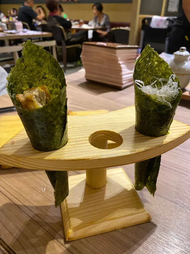 軟殼蟹同蔥吞拿魚腩手卷,細細件剛剛好。
