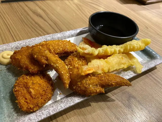 炸物~~墨魚餅、炸蝦餅、芝麻脆皮雞翼、海蝦天婦羅、松葉蟹棒
