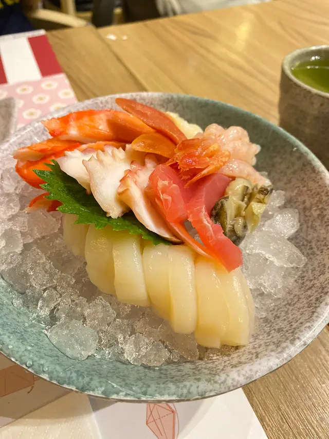 刺身~~八爪魚、松葉蟹棒、帶子、吞拿魚、北寄貝、甜蝦、蠑螺