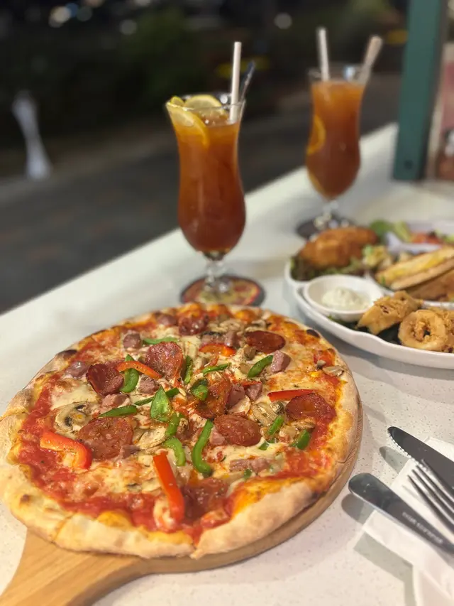 Pizza 餡料包括白菌、香腸、意大利辣腸和意大利青椒,青椒的清新與豐富的肉香相結合,加上拉絲的芝士,十分吸引。