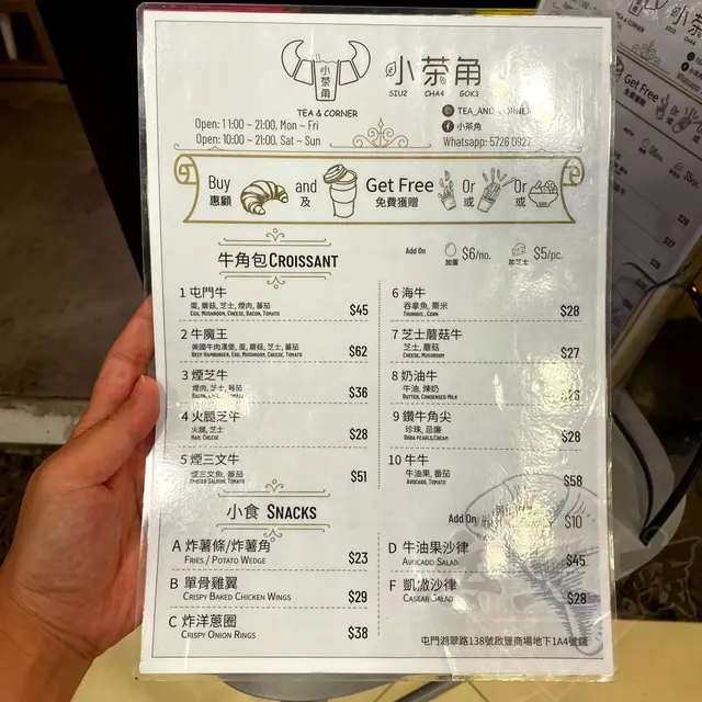 今日小編放假終於可以搵下屯門美食🍽,今次搵遠少少去到屯門碼頭嗰邊試下啲唔同既野🤭,其實小編仲要係第一次去屯門碼頭😝,所以對周圍既環境更加好奇。今次搵既呢間小店係啟豐商場入面主打牛角包配上唔同材料既小食👀,而呢間餐廳係叫做「小茶角」。✦✦✦✦✦✦✦✦✦✦✦✦✦✦