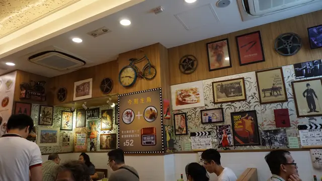 命名為老爺冰室,讓人聯想起坊間的老字輩餐廳,潛意識認為是古色古香的意思。然而招牌的設計卻沒有那麼古老陳舊,完全是新派的樣子。走進店子,明白了,不是特地要打造成那種數十年老字號的感覺。以懷舊電影作主題,雖然在我看來有少許亂,但玩味由然而生。而牆上貼的海報相片等,仔細閱過,會發現其實是頗有趣的。