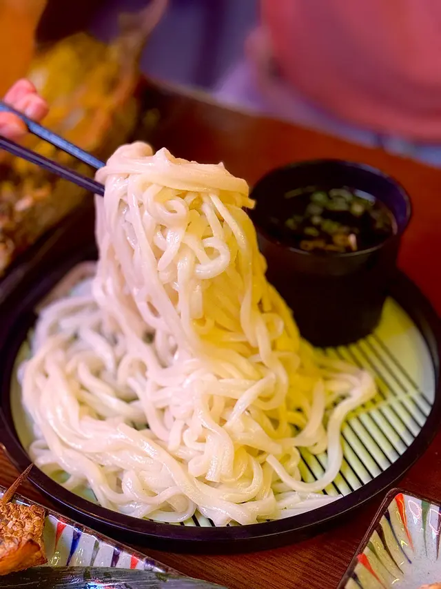 手打冷烏冬彈牙有嚼勁,簡簡單單蘸醬汁就好