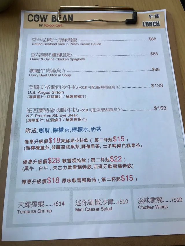 自助形式的牛扒餐 nana_iris等级22018-01-05541 浏览 关注 難得同屋企人出街,諗住搵間舒服d既餐廳坐下,見到門口好似幾靚又未食過所以即管試試星期六都有午餐美國西冷(加烏冬),原來都幾多野,有沙律薯條同湯,牛要左全熟(媽媽唔食得生),唔會太un,一口十分方便,但份量少左d加錢要左杯朱古力軟雪糕,朱古力好濃,雪糕好滑唔知道牛扒本身跟左薯條,早知唔叫,而且芝士太少,都食唔出芝士味妹妹點的,我覺得一般餐廳係自助形式,點完餐比個牌仔你,響就去攞餐,調味餐具水都係全自助以上食记乃用户个人意见 , 并不代表OpenRice之观点。赞好分享自助形式的牛扒餐 Cow Bean (荃灣廣場) https://s.openrice.com/QrLT0iFai00检举 张贴 评分3味道4环境4服务5卫生3抵食用餐途径堂食