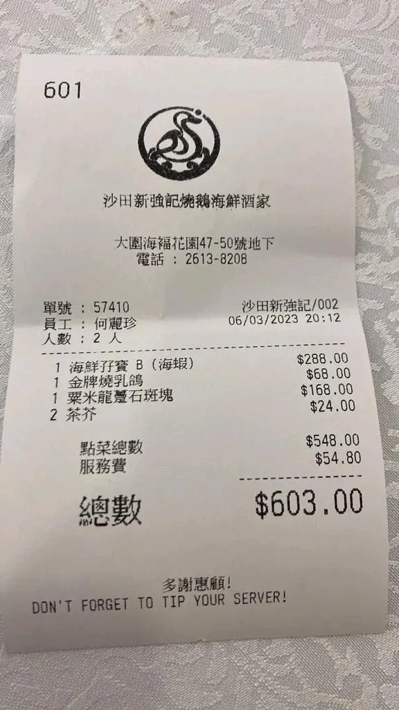 埋單$603都算合理。